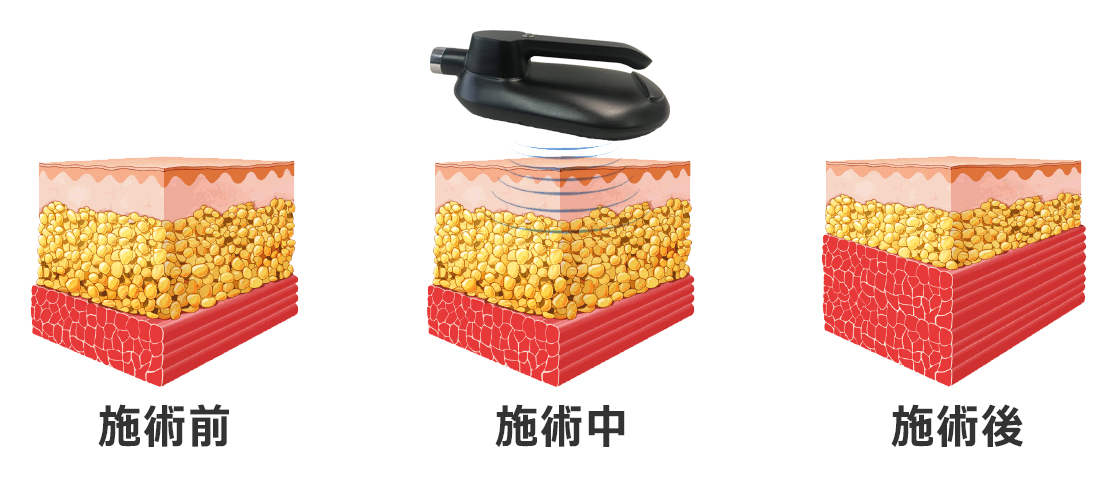 施術中:エネルギーが脂肪と筋肉の層に浸透している間、皮膚は影響を受けません。