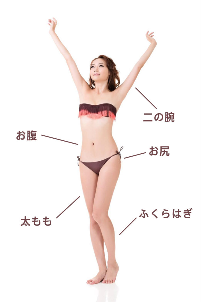 二の腕・お腹・ヒップライン・腰・太もも・ふくらはぎなど、体の様々な箇所への施術が可能です